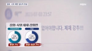 '집회·시위 제한 강화' 71% 찬성…소음, 도로 규제 엄격해진다 【 앵커멘트 】 대통령실이 지난 한 달 동안 집회와 시위에 대한 제한을 강화하는 안에 대해 국민 여론을 수렴했는데,...장음)) "윤석열 정권 퇴진하라!" 지난 5월 민주노총 건설노조가 서울 광화문 일대에서 1박 2일 노숙 집회를 벌인... 2023.07.04