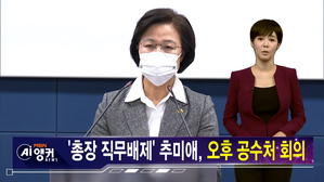[김주하 AI 뉴스] '묵묵부답' 출근 추미애, 오후 공수처 회의 참석 김주하 AI 뉴스입니다. 검찰총장 직무배제라는 초유의 조치를 단행한 추미애 법무부 장관은 오늘(25일) 오후 공수처... 지금까지 김주하 AI 앵커가 전해 드렸습니다. #검찰총장직무배제 #추미애 #법무부장관 #윤석열 #공수처회의 #김주... 2020.11.25