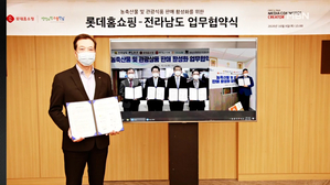 롯데홈쇼핑, 전남도와 지역경제 활성화 업무 협약 ...려해 화상회의 방식으로 진행됐는데, 이완신 롯데홈쇼핑 대표를 비롯해 김영록 전남도지사, 서동용 국회의원, 김순호 구례군수 등 관계자들이 참석했습니다. 앞으로 롯데홈쇼핑은 전 지역축협이 공동으로 설립한 축산 브랜드 ‘지리산순한한우’ 상품 판매를 통해 한우 소비를 촉진하고, 구례 특산물인 산수유를 활용한 상품을 개발하는 등 전라남도 지역 우수... 2020.10.12