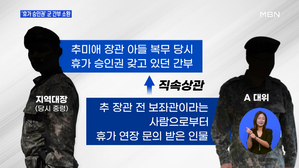 검찰, 추미애 장관 아들 '군 휴가 연장 문의' 군 간부 소환 ...가 미복귀 의혹'과 관련해 검찰이 해당 군 장교 2명을 전격 소환해 조사하고 있습니다. 서 씨의 휴가 연장 과정에 관여했던 군...o.kr ] 영상취재 : 이동학 기자 영상편집 : 김경준 #MBN #추미애 #추미애아들 #군간부소환 #서울동부지검 #노태현기자 20.09.09 19:20