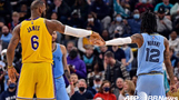 '모란트 41점' 멤피스, 레이커스 제압 미국프로농구(NBA) 멤피스 그리즐리스가 자 모란트의 활약을 앞세워 LA레이커스를 잡았다. 멤피스는 30일(한국시간) 미국 ...점과 함께 10리바운드를 기록, 팀 승리를 이끌었다. 데스몬드 베인이 20득점, 제이렌 잭슨 주니어가 15득점으로 뒤를 이었다... 21.12.30 13:06