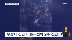 슈퍼주니어 손잡으려다 '와르르'...공연 중 펜스 붕괴 '아찔' ... 현장에 있던 멤버는 당혹감을 감추지 못한 채 머리를 감싸쥐며 괴로워합니다. 사고 직후 부상자들은 인근 병원으로 긴급 이송됐습니다. 다행히 생명에는 지장이 없으나 염좌와 타박상 등으로 약 2주간의 안정이 필요하다는 진단을 받았습니... 2026.04.06