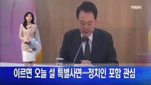 2월 6일 굿모닝MBN 주요뉴스 ...함 관심 윤석열 대통령이 설 연휴를 앞두고 이르면 오늘 특별사면을 단행합니다. 정치인 사면은 최소로 예상되는데, 김관진 전 국방부 장관 등 박근혜 정부 인사들이 명단에 포함될지 주목됩니다. ▶ 의대 증원 규모 발표…의협 '반발' ... 2024.02.06