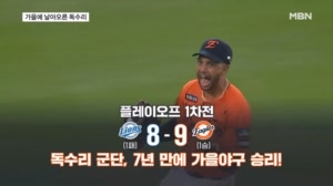 가을에 날아오른 독수리…7년 만에 가을야구 첫 승 ...아섭이 동점 2루타를 터뜨렸고, 이어진 채은성의 2타점 적시타로 재역전에 성공했습니다. 8회 1점을 보탠 한화는 마무리투수 김서현이 2점을 내주며 턱밑 추격을 허용했지만, 9회 초 1아웃 상황에서 등판한 김범수가 마지막 아웃카운트를 잡아내며 짜릿한 한 점 차 승리를 거뒀습니다. --- 독수리 군단이 가을 무대 첫 승을 거둔 날,... 25.10.18 19:30