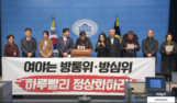 언론시민단체 "야당, 국회 몫 방통·방심위원 즉시 추천해야" 김장겸 국민의힘 의원과 언론시민단체들이 여야가 공석인 방송통신위원회와 방송통신심의위원회 위원들을 추천해야 한다고 주장했습니다...범국민운동본부, 공영방송정상화범국민투쟁본부, 방송언론소비자주권연대, 새미래포럼, 자유언론국민연합 등 언론시민단체는 오늘(10일... 25.02.10 10:08