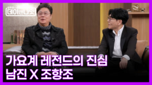 가요계 레전드 남진·조항조, 데이앤나잇에 떴다! ... 지나 IMF 시대 남자들의 인생곡을 만든 조항조의 에피소드까지. 조항조, 방송 최초 공개 실제 나이 공개! 60년 차 가왕 남진의 소망! 나훈아·조용필과 함께 무대에 서고 싶다! 레전드의 삶과 진심이 터진 밤, 절대 놓치지 마세요. 프로그램명 :김주하의 데이앤나잇고화질, 고화질, 일반화질, 2026.03.21