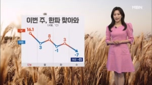 [날씨] 이번 주, 본격 겨울 추위…동해안 건조주의보 11월의 마지막 날인 오늘 예년보다 온화한 날씨가 이어졌습니다. 다만, 날이 건조합니다. 동해안을 따라서는 건조특보가 발효 ...내릴 전망입니다. 날씨였습니다. (정예은 기상캐스터) #MBN #날씨 #기상캐스터 #정예은 #한파 #겨울 #눈 #MBN뉴스센터 25.11.30 20:08