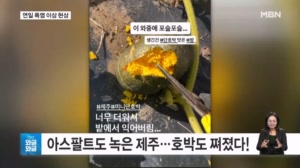 [인터넷 와글와글] 아스팔트도 녹은 제주…호박도 쪄졌다! 전국적으로 기록적인 폭염이 이어지는 가운데, 제주도에서는 단호박이 밭에서 그대로 익어버리는 일이 발생했습니다. 줄기에 매달린 미니 단호박이 방금 찜통에서 꺼낸 것 마냥 진한 노란색인데요. 농장 주인은 믿기지 않는 듯, 가위로 헤집어... 2025.07.31