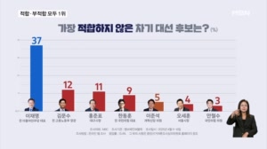 차기 대통령 '적합도 1위' 이재명, '부적합'도 37%로 1위 ...령 파면 이후 실시된 여론조사에서도 차기 대통령으로서의 적합도와 부적합도를 조사했더니 이 전 대표가 모두 1위를 기...기록했습니다. 이 전 대표는 앞선 여러 조사에서도 차기 대권 부적합도 1위였던 만큼, 비호감 정서 해소는 조기 대선... 2025.04.09