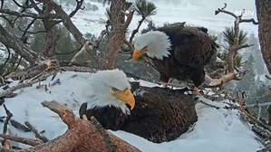 [굿모닝월드] 보호 교대 ...입니다. 땅에서 44m 높이의 소나무 둥지에서 한 쌍의 대머리 독수리가 포착됐는데요. 날아온 독수리가 암컷, 둥지를... 거란 관측인데요. 혹독한 추위와 강풍이 변수라고 하네요. #MBN #미국 #대머리독수리 #굿모닝월드 #김유진아나운서 2022.02.25