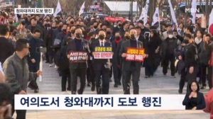 국힘 "사법 장악 규탄" 외치며 청와대까지 도보 행진 ... 시행되면 권력이 국민의 자유를 박탈하게 될 것이라고 주장했습니다. 집회를 마친 뒤에는 검은 마스크를 착용한 채 도보 행진을 이어갔습니다. ▶ 스탠딩 : 노하린 / 기자 - "국민의힘 의원들과 당협위원장들은 광화문을 지나 청와대 방향으... 2026.03.04