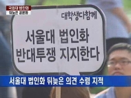 뒤늦은 '국립대 법인화' 공론화 ... 국립대 법인화 문제가 오늘(20일) 국회 차원에서 처음으로 공론화됐습니다. 하지만, 이미 서울대 법인화 법안이 통과됐고, 여...로 서울대 법인화가 진행 중인 상황에서 뒤늦은 의견 수렴은 '뒷북'에 불과하다는 지적입니다. 지난 13일에야 국회 상임위에서 ... 11.06.20 19:31