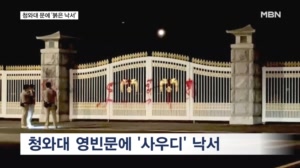 청와대에 '사우디' 붉은 낙서 40대 여성 검거…조사 후 응급입원 ..., 경찰관은 버스로 문을 막은 채 현장을 살피고 있습니다. 어젯(18일)밤 9시 30분쯤 청와대 영빈문에 붉은색 래커로 '사우디' 등 낙서를 했단 신고를 받고 경찰이 출동한 모습입니다. ▶ 인터뷰 : 목격자 - "제가 아까 택시를... 2025.07.19
