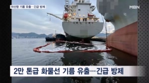 창원 마산항 화물선 기름 유출…부산 아파트 화재 150명 대피 【 앵커멘트 】 마산항 앞바다에 정박 중인 2만 톤 급 화물선에서 급유 중 기름이 유출돼, 해경이 경비함정 5척을 동원해 긴...영 기자입니다. 【 기자 】 대형 화물선이 나란히 정박 중인 마산항 인근 해상입니다. 해경 경비함정이 주황색 오일펜스를 길게 ... 23.10.01 19:21
