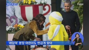 '레임덕' 분장에 오바마 '깜짝'…유쾌한 백악관의 핼러윈 ... 부부와 인사를 나눕니다. 오바마 대통령은 양복을 입고 머리를 회색으로 칠해 '꼬마 오바마'로 분장한 어린이를 보고...탕이에요.)" 오바마 부부는 사탕 꾸러미를 나눠준 후에 마이클 잭슨의 명곡 '스릴러'에 맞춰 좀비로 변장한 어린이들... 2016.11.02