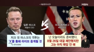 저커버그 "머스크에 이달 26일 결투 제안" ...크에 이달 26일 결투 제안" (0808) 출연자 이동석 전 대통령실 행정관 신정현 전 민주당 정책위원회 부의장 윤영걸 전 매경닷컴 대표 최창렬 용인대 특임교수 #MBN #MBN아침앤매일경제 #김은미앵커 #일론머스크 #마크저커버그 #결투제안 #X생중계 23.08.08 09:51