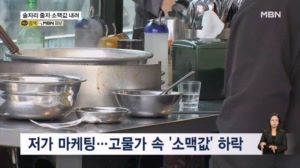 술 소비 위축에…음식점 소맥값 '역주행' ... 한 병 소주 한 병 이런 식으로밖에 안 나가. 이게 술이 많이 안 나가." 술 손님이 줄자 서울 대학로의 한 먹자골목에서는 300mL 맥주 한 잔을 1천 원대에 파는 가게들까지 등장했습니다. 맥줏값을 절반 정도로 대폭 낮춰 손님... 2025.04.09