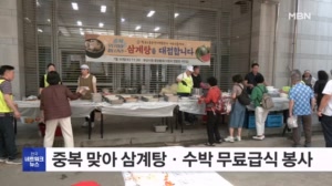 한국노총 부산, 중복 맞아 어르신 삼계탕 무료급식 봉사 한국노총 부산지역본부가 중복을 맞아 어르신 급식 봉사활동을 펼쳤습니다. 어제 오전 11시부터 부산시청 인근에서 진행된 급식 행사에는 어르신 700명이 초청됐으며, 삼계탕과 수박이 무료로 제공됐습니다. [박상호 기자 / hachi@mbn.co.kr] 25.07.31 09:20
