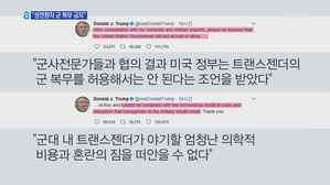 트럼프 "트랜스젠더 군대서 나가!" 미국 또 '들썩' 【 앵커멘트 】 트럼프 미국 대통령이 트랜스젠더 즉 성전환자는 군대서 복무할 수 없도록 하겠다고 밝혔습니다. 국방부... "이 반지는 나라에 대한 사랑이에요." ▶ 인터뷰 : 바네사 셰리던 / 퇴역 공군 (트랜스젠더) - "전, 제가 ... 2017.07.27