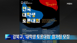 서울 강북구, 4·19혁명 60주년 '전국 대학생 토론대회' 개최…3월2일부터 참가팀 모집 서울 강북구와 4·19혁명국민문화제위원회는 오는 4월 '4·19혁명 국민문화제' 때 개최할 '전국 대학생 토론대회'...모 주제가 다르면 신청할 수 있고 참가비는 무료입니다. 박겸수 강북구청장은 "4·19혁명 60주년을 맞아 우리나라 ... 2020.01.08