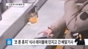 [인터넷 와글와글] '코 푼 휴지' 테이블에 던지고 간 배달기사 배달기사가 테이블에 비치된 휴지를 뽑고 열심히 코를 푸는데요. 손으로 휴지를 구기는가 싶더니 이내 테이블에 휙 던져버립니다.... 손님들이 쓰는 테이블에 집어던지고 가는 거냐" 토로하면서, 배달 기사들의 노고는 이해하지만 도저히 이해할 수 없는 행동이라고... 26.01.20 07:55