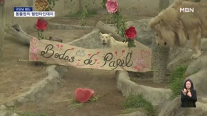 [굿모닝월드] 밸런타인데이에 결혼 1주년 맞은 백사자! 페루 리마의 한 동물원. 이 동물원의 백사자 부부가 밸런타인데이에 결혼 1주년을 맞았습니다. 아기자기한 꽃 장식과, 하트 모양의 간식이 보이는데요. 모두 이 두 마리의 백사자를 축하하기 위해섭니다. 무리 지어 사는 사자가 가족을 이룰 수 있도록 동물... 23.02.16 07:50