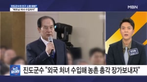 진도군수 "스리랑카·베트남 처녀 수입하자" 논란 【 앵커멘트 】 "스리랑카와 베트남에서 처녀를 수입해 인구 소멸 문제를 해결하자!" 여성은 물론 특정 국가를 비하하...▶ 인터뷰 : 김희수 / 전남 진도군수 - "스리랑카나 베트남이나 그쪽 젊은 처녀들 수입 좀 해 갖고 농촌 총각 장... 2026.02.06