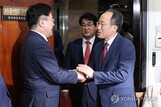 넥타이 이야기로 '화기애애'...25만원·특검 이슈에 '경직' ...신 배준영 원내수석부대표와 함께 민주당 원내대표실을 찾아갔습니다. 추 원내대표를 맞은 박 원내대표는 악수한 뒤 "제가 가진 넥타이 중에 가장 붉은 기가 있는, 하지만 파란색이 섞인 보라색 넥타이를 맸다"며 양당 원내대표 만남의 의미를 부여했습니다. 추 원내대표는 "일하기 좋은 파트너가 되겠다는 기대가 크다'... 24.05.13 13:50