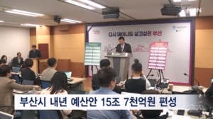 부산시 내년 예산안 15조 7천억 원 편성…올해보다 2.43% 증가 부산시가 내년도 예산을 올해 본예산보다 2.43% 증가한 15조 6,998억 원으로 편성했습니다. 박형준 부산시장은 기자회견을 열고 내년도 예산 방향을 '더 행복한 시민', '활력있는 지역경제' 등 4개 분야에 중점을 두고 편성했다... 2023.11.10
