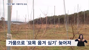 남부지방은 봄비도 '찔끔'…가뭄 해갈에 역부족 【 앵커멘트 】 오늘 봄비가 일부 내렸지만 남부지방은 가뭄 해갈에는 턱없이 부족한 양이었습니다. 한꺼번에 100mm 정도는 내려야 한다는데, 찔끔 내린 봄비에 농민들의 마음도 타들어가고 있습니다. 정치훈 기자입니다. 【 기자 】 나무시장에 묘목을 사... 23.03.12 19:30