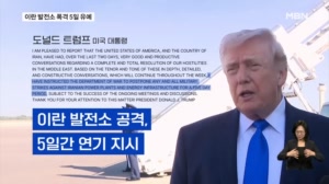 트럼프, 이란 발전소 폭격 5일 유예…이란 "시간 벌기" ...입니다. 미국과 이란 간 대화는 이번 주 내내 계속될 것으로 전망되는 가운데, 확전과 종전의 갈림길에 선 중동 전쟁이 최대 분수령을 맞이하고 있습니다. MBN뉴스 한여혜입니다. [han.yeohye@mbn.co.kr] 영상편집 : 송현주 그 래 픽 :... 26.03.24 07:00