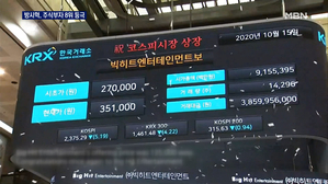 'BTS 위력' 방시혁 주식 3조 1,900억 원대…주식부자 8위 등극 ...었죠? 오늘(15일)은 세계적인 그룹 방탄소년단의 소속사 빅히트엔터테인먼트가 코스피에 상장했습니다. 결과가 어땠을까...주식시장의 '마지막 대어', 방탄소년단(BTS)의 소속사 빅히트엔터테인먼트가 코스피에 상장됐습니다. 공모가보다 2배... 2020.10.15