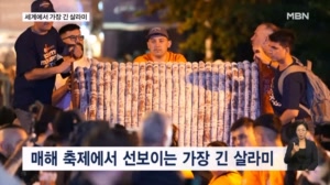 [굿모닝월드] 도전 또 도전! 세계에서 가장 긴 살라미 ... 옮기는 모습이죠. 이들이 옮기고 있는 것! 다름 아닌 살라미라고 합니다. 길이가 무려 500m에 달하는 소시지라니...요? 아르헨티나 탄딜의 한 축제에서는 세계에서 가장 긴 살라미를 만들기 위해 해마다 이같은 도전을 이어간답니다. 재... 2025.11.10