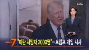 1월 12일 MBN 뉴스7 주요뉴스 ..."이란 사망자 2000명"…트럼프 개입 시사 이란 반정부시위 진압 과정에서 2000명 넘는 사망자가 발생했다는 보도...1억 원을 주고 받은 혐의로 강선우 무소속 의원과 김경 서울시의원을 출국 금지 조치했습니다. ▶ 서울 시내버스 파업... 2026.01.12