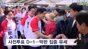 [21대 대선] 사전투표 D-1…막판 지지층 결집 총력전 ...다. 이재명 더불어민주당 대선 후보는 서울 동북권에서 유권자들의 표심을 공략합니다. 첫 일정으로 서울 광진구 어린이대공원 앞에서 지지자들을 만난 뒤 성동구 왕십리역으로 이동해 한 표를 호소할 계획입니다. 유세에 앞서 '1400만 ... 2025.05.28