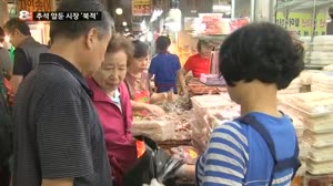 추석 앞둔 시장 모처럼 '북적' ...활기가 넘칩니다. 몰려드는 손님에 기분이 좋은 한과집 사장님은 흔쾌히 가격을 깎아줍니다. "골라보세요. 세 개에 오천원. 좋아요." ▶ 인터뷰 : 이양희 / 한과점 상인 - "추석을 앞두고 있어서 손님이 엄청 많아요. 그래서 좋아... 2013.09.14