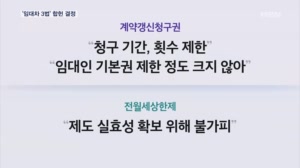 전세시장 갈등 부른 임대차3법 '합헌'…헌재 "입법 목적 정당" ...2년 간 살고 있는 집에서 더 살 수 있도록 계약 연장을 요구할 수 있게 됐고, 집주인은 실거주 등 정당한 사유 없이 이를 거절할 수 없게 됐습니다. 또 집주인이 재계약 때 전월세금이나 보증금가격을 지나치게 올리지 못하도록 인상률을 제한하는 규정도 담겼습니다. 치솟던 전세값에 세입자의 주거 안정성을 높... 24.02.28 19:00