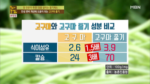 고구마 줄기만 수확한다?! 장내 유해 가스를 제거하는 클로로겐산이 다량 함유된 고구마 줄기 프로그램명 :천기누설고화질, 일반화질, 저화질 2017.08.27