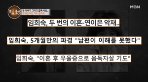 가수 임희숙이 음독자살을 시도했던 사연은? MBN 목요일 (밤) 9시 10분 프로그램명 :특종세상고화질, 고화질, 일반화질, 2023.06.01