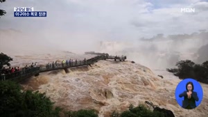 [굿모닝월드] 이구아수 폭포 장관 브라질에서 바라본 이구아수 폭포의 모습. 브라질 남부에 집중된 폭우로 지난 일주일간 폐쇄됐던 다리가 다시 문을 열었...데요. 브라질과 아르헨티나, 파라과이 국경에 걸쳐있는 이구아수 폭포 유량이 평소보다 10배 이상 늘어났습니다. 보통... 2022.10.18