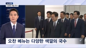 [뉴스추적] "다양한 색깔 국수로 통합 메세지"…여야 지도부 오찬 이모저모 【 앵커멘트 】 여야 지도부 오찬 회동 관련해서 대통령실 출입하는 선한빛 기자에게 좀 더 자세한 이야기 들어보겠습니다. 【 질문1 】 선 기자, 일단 회동 분위기가 어땠는지 볼까요? 【 기자 】 오찬이나 만찬을 겸하는 정치인들의 회동 자리에선 식사 ... 25.06.22 19:00