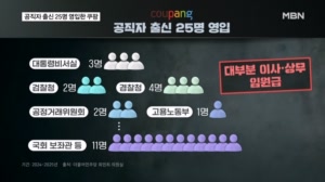 쿠팡, 최근 2년간 정부·국회 퇴직 공직자 25명 영입 ...이 줄을 이었습니다. 국회 보좌관과 정책연구위원 출신도 11명 포함됐습니다. 이들은 대부분 쿠팡과 쿠팡 계열사의 이사나 상무 등 임원급으로 자리를 옮겼습니다. 퇴직 공직자는 이해충돌 우려가 있는 기관으로 재취업할 때 취업 제한 심... 2025.12.12