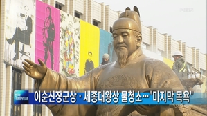 광화문 이순신·세종대왕상 물청소…'마지막 목욕'? 광화문광장을 지키는 이순신장군상과 세종대왕상이 겨우내 쌓인 미세먼지를 털어냈습니다. 서울시는 어제(9일) 저압 세척...다. 내년부터 시작되는 새 광화문광장 조성 공사에 따라 이순신·세종대왕상의 이전을 검토 중이라 현 위치에서 '마지막... 2019.04.10