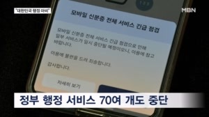 모바일 신분증 '무용지물', 정부 사이트 '먹통'…정부도 '네이버'로 상황 전파 ...종 정부 사이트도 먹통이 됐습니다. 예상치 못한 상황으로 인한 불편함은 시민들의 몫이었습니다. 정태웅 기자가 피해 ... 이용객들에게 플라스틱 실물 신분증을 준비해달라고 급히 공지했습니다. ▶ 스탠딩 : 정태웅 / 기자 - "급작스러운... 2025.09.27