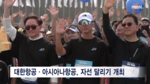 "함께 달려요" 대한항공·아시아나항공, 자선 달리기 행사 개최 ...사 출범을 앞두고 자선 달리기 행사를 열었습니다. 어제(14일) 인천 영종도에서 열린 '위런' 행사에는 양사 객실승무원 등 임직원 1500명이 참여했습니다. 양사는 임직원들이 달린 총 주행거리만큼 기부금을 조성해 난치병 아동 소원 성취를 지원하는 메이크어위시 코리아에 전달할 예정입니다. 누적... 26.04.15 10:00