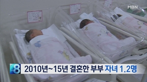 [뉴스8 단신] 2010년~2015년 결혼 부부 8.2% "애 안 낳는다" 2010년에서 2015년 사이에 결혼한 부부의 8.2%가 출산계획이 없고, 이에 따라 기대 자녀수도 1.91명에 불과한 것으로 나타났습니다. 기대 자녀수는 현재 출산한 아이와 앞으로 출산할 계획이 있는 아이를 합한 숫자로, 기대자녀... 2017.11.20