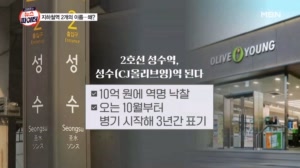 이번 역은 '올리브영' 역?…10억에 팔린 성수역 이름 - 김명준의 뉴스파이터 ...올리브영, 성수역명 10억 원에 낙찰 치과에 낙찰된 강남역…11억 1,100만 원 '최고가' 강남역 낙찰 치과, 자우림 김윤아 남편이 근무하는 병원 김윤아 "남편, 해당 치과에 '페이닥터'로 근무" 최진녕 변호사 전예현 시사평론... 2024.08.13
