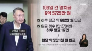 윤석열 재구속 109일간 영치금 '6.5억'…"출금 완료" ...원회 소속 박은정 조국혁신당 의원이 법무부로부터 제출받은 '수용자 보관금 상위 10명' 현황 등에 따르면, 윤 전 대통령은 재구속된 7월 10일부터 지난달 26일까지 6억 5,725만 원의 영치금을 받았습니다. 서울구치소 영치금 1위입니다. 윤 전 대... 25.11.09 10:22