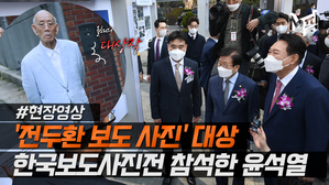 '전두환 보도' 사진전 참석…윤석열 "사진이 역사를 바꾼다" 【 앵커멘트 】 윤석열 당선인은 오늘(4일) 보도사진전에 참석했는데, 마침 이번 대상작이 '광주 재판날 동네 산책하던 전두환'씨 사진이었습니다. 윤 당선인은 "몇 장의 사진이 역사를 바꾼다"는 평가를 내놨습니다. 주진희 기자입니다. 【 기자 】 선거... 22.04.04 19:31