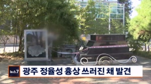 광주 정율성 흉상 훼손된 채 발견 광주 정율성거리에 있던 정율성 흉상이 쓰러진 채 발견돼 관할 지방자치단체가 경위 파악에 나섰습니다. 광주 남구에 따르면 오늘(2일) 아침 정율성 흉상이 쓰러져 있다는 신고가 접수됐다며 누군가 고의로 흉상을 철거한 것으로 보고 수사를... 2023.10.02